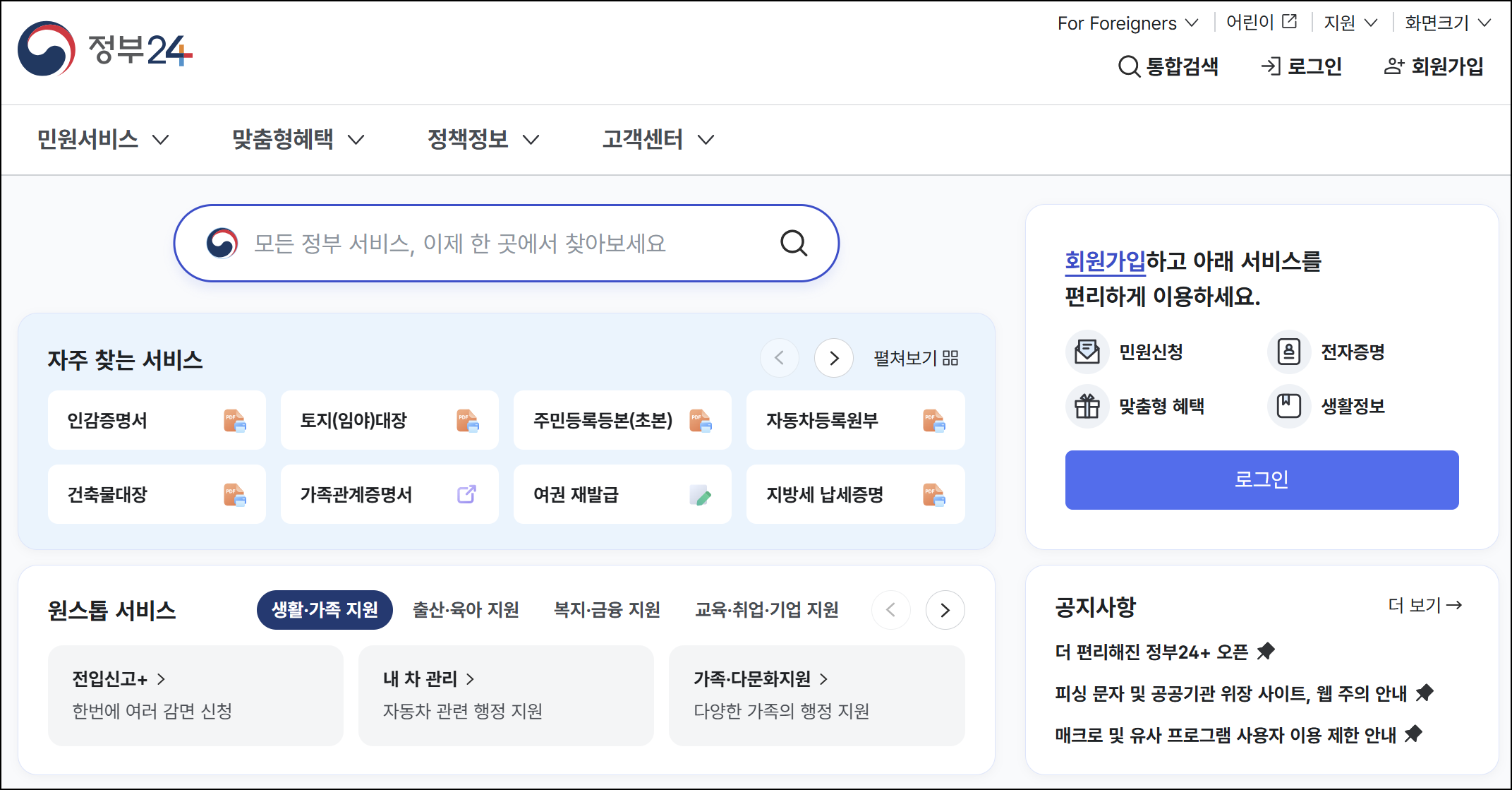 - 정부24 – 민원 발급 통합 안내